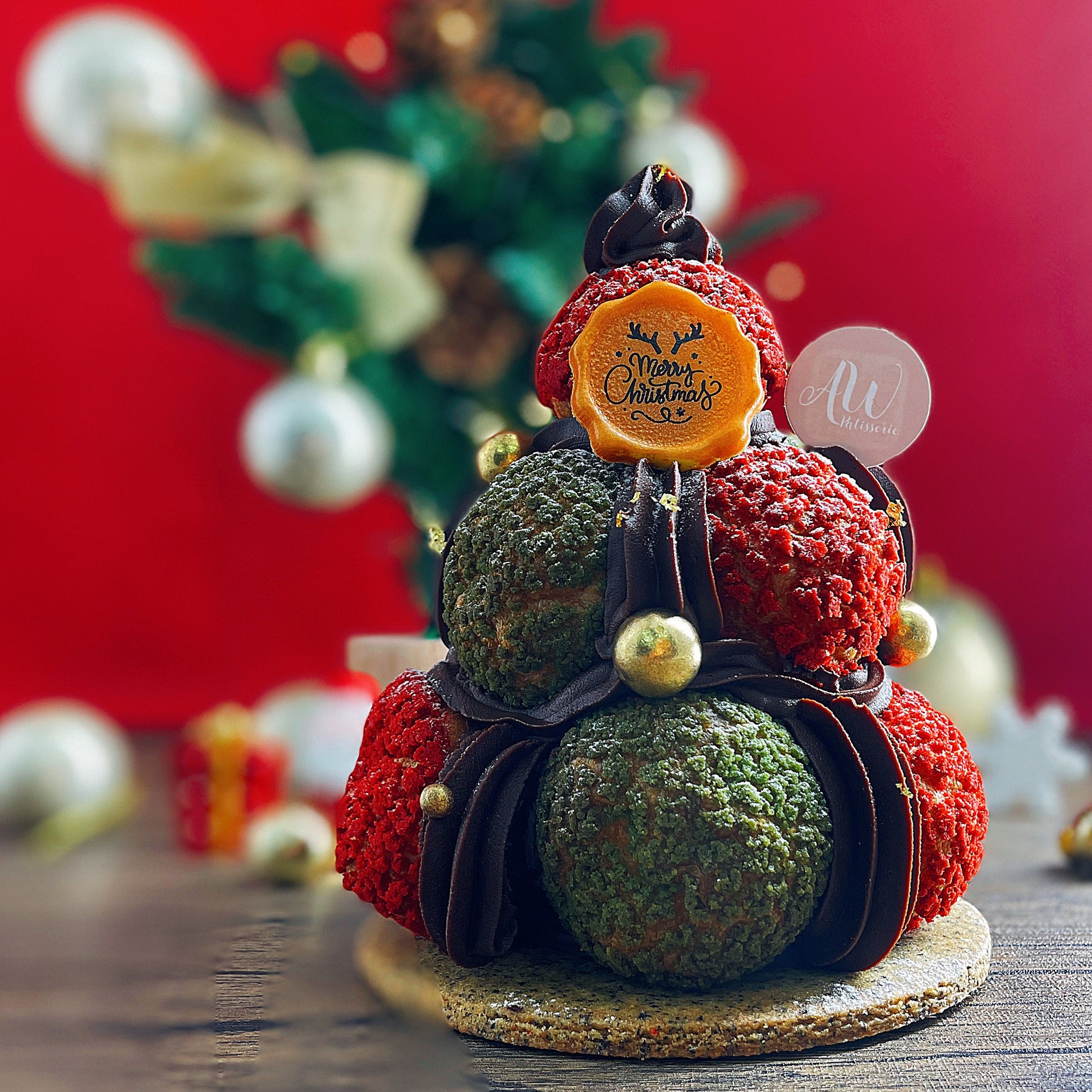 AW Patisserie 獨家呈獻聖誕限定的聖誕樹泡芙塔蛋糕(Saint-Honoré),為您的節日派對增添無限儀式感!這款法式手工甜品以優雅的聖誕樹造型呈現,是完美的派對甜點和聖誕蛋糕選擇。
